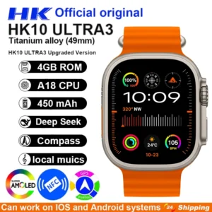 HK10 Ultra 3 Max Smartwatch 2025 (49mm) – 2.01" HD AMOLED Display, 4G ROM, Bluetooth 5.2 Calls, NFC, Compass, Fitness & Heart Rate Tracker – For Men & Women
