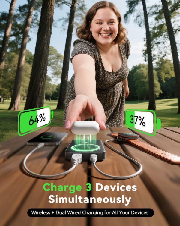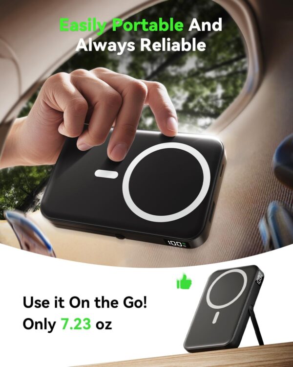 Stay powered anywhere with the 10000mAh MagSafe Power Bank. Featuring 22.5W PD fast charging, dual USB output, a foldable stand, and LED display, it’s the perfect portable charger for iPhone and Android devices.