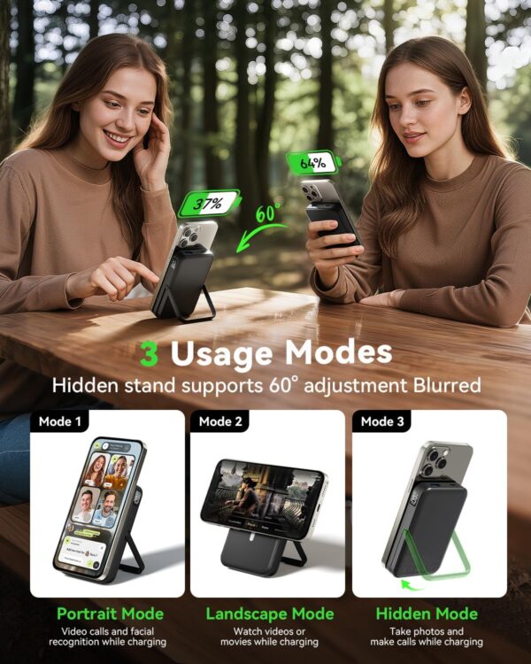 The MagSafe-compatible magnetic design ensures a secure connection with iPhone models, while the foldable stand transforms your charger into a hands-free viewing station – perfect for watching videos, video calls, or gaming while charging.