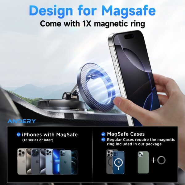 Whether you’re commuting daily or going on long road trips, the ANDERY MagSafe Car Phone Holder delivers superior grip, flexibility, and durability—making it a reliable accessory for safe and convenient smartphone use in your car.